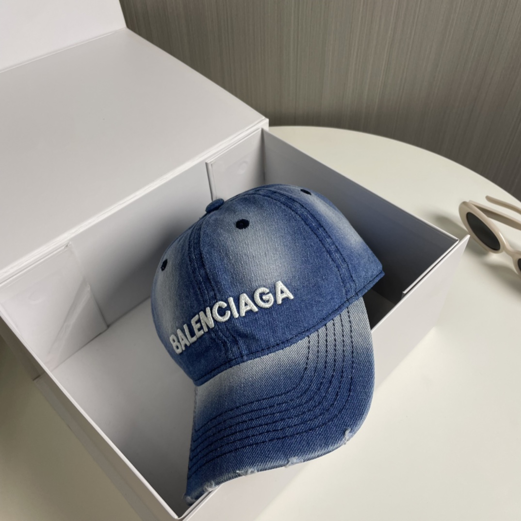 BALENCIAGA's new washed denim baseball caps come in cool color schemes, offering different styles for both men and women. The first batch is now available! A must-have for Parisian pink!