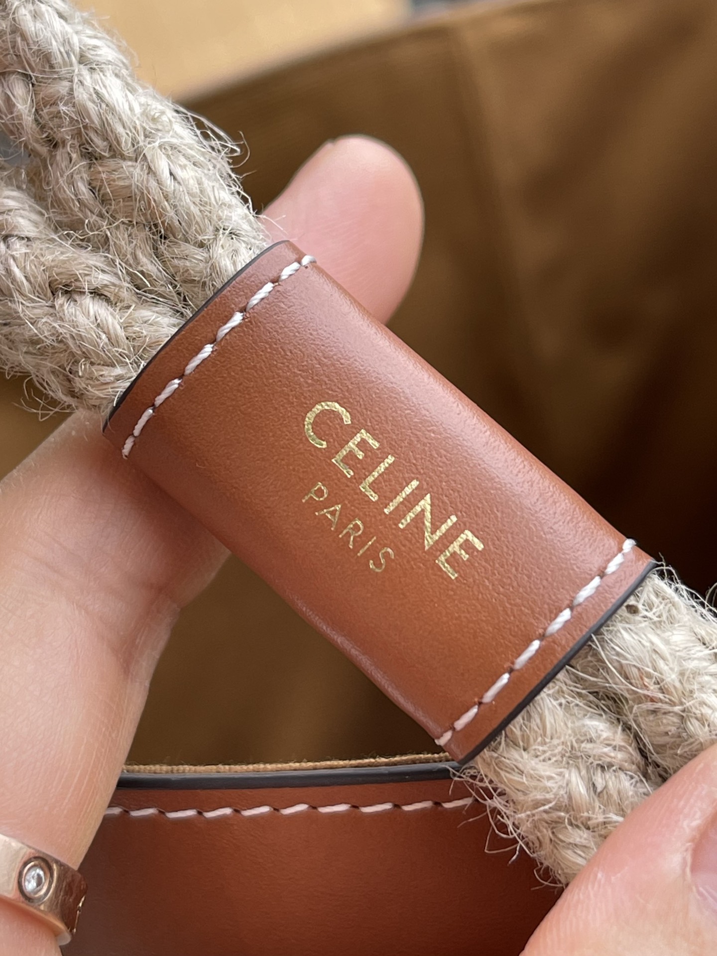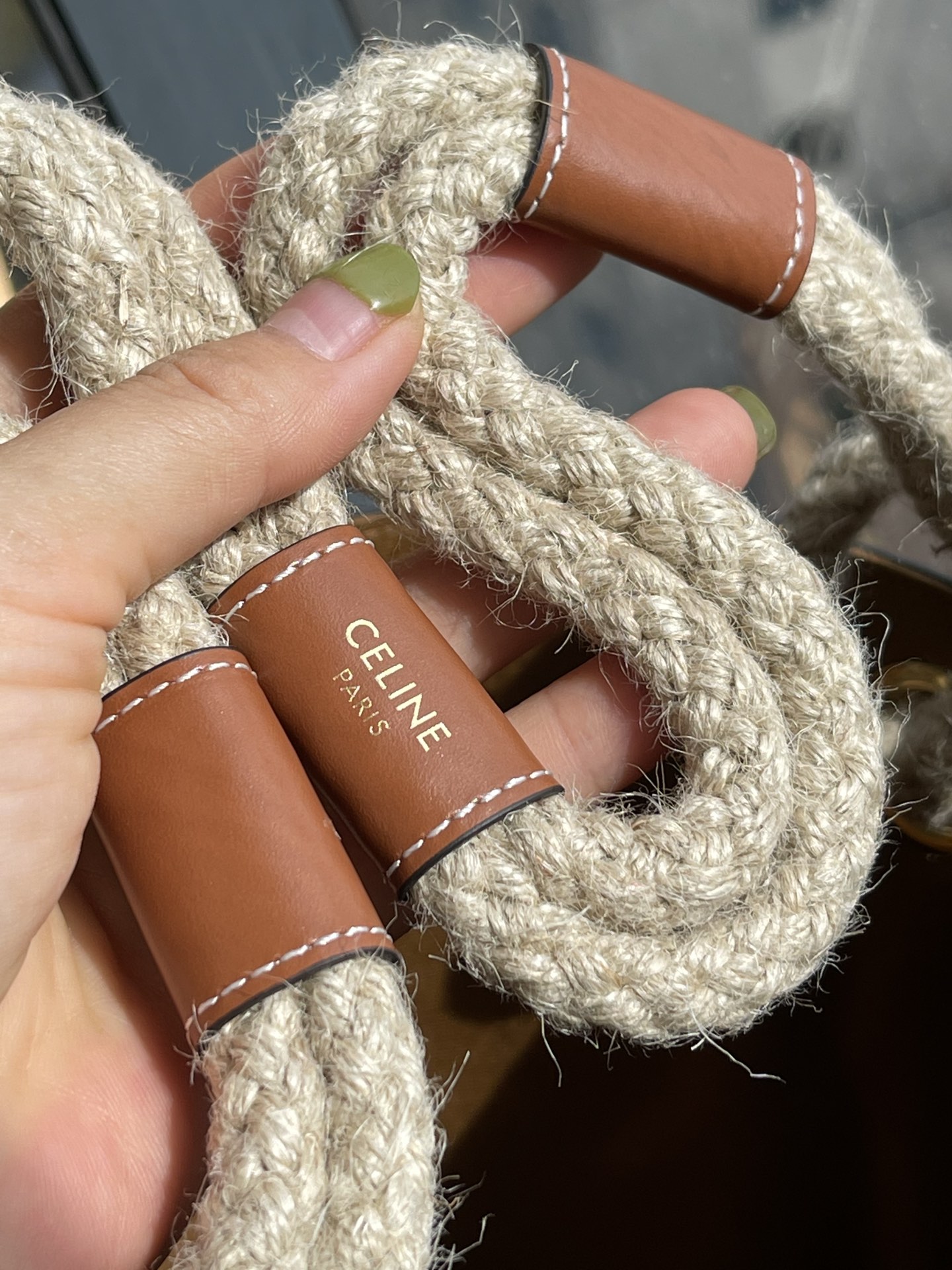 Just take a look at the pattern and texture of the Celine logo tie. You can see it on it and it can also easily help us identify the LOGO. Paired with a hemp rope shoulder strap, it is particularly retro and fashionable!