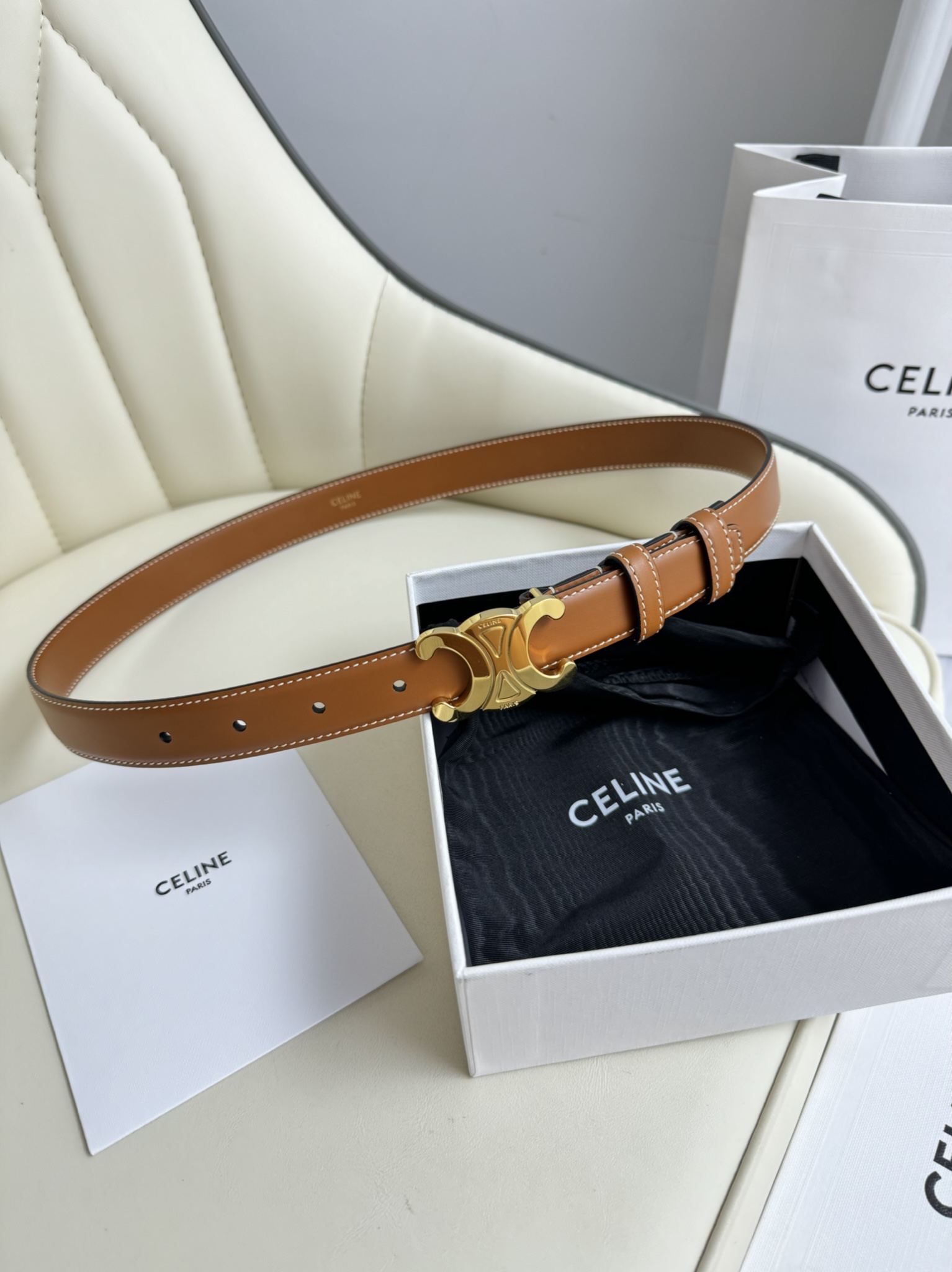CELINE counter in sync, belt width 2.5cm top layer small leather, eye-catching debut, neat and elegant, extremely good-looking and classic Arc de Triomphe belt, casually match coat ?? skirt ?? jeans ??