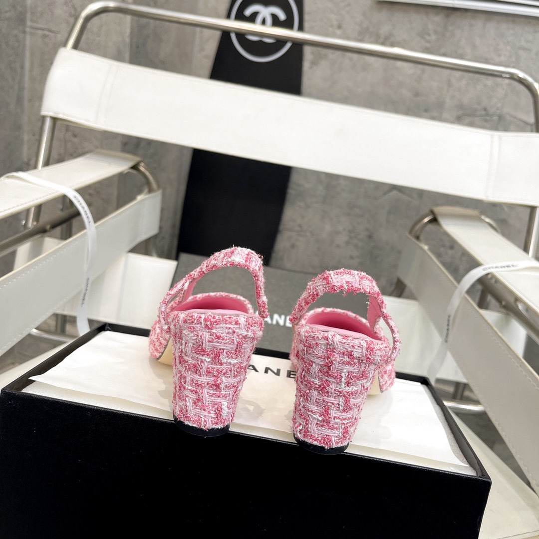 Factory price ???? Women shoes Women CHANEL latest collection, Thick-heeled square toe multicolor versatile high-heeled backheel women's sandals. Material: The upper is made of imported full-grain mixed sheepskin combined with silk satin, the lining is mixed sheepskin, and the sole is Italian imported cowhide. Size: 35-39. Heel height :3.5-6cm. Price size: 34-43 (34 40 41 42 43 custom-made). Chanel