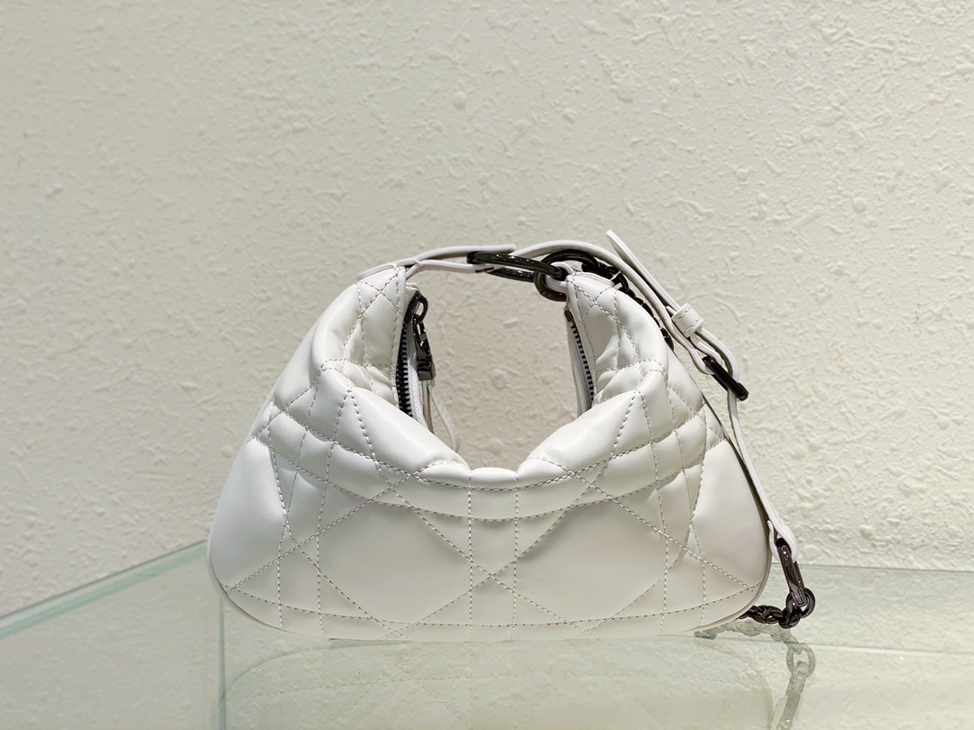 Dior's top imported original factory cowhide chain two-in-one bag. This Dior Caro tulip handbag is the new product of this season. It was elaborately designed by Maria Grazia Chiuri, integrating multiple elements and highlighting a modern style. Crafted from white cowhide, it is adorned with quilted oversized rattan checkered stitching, presenting a unique style. Mini style, two-in-one design, with adjustable leather and metal layer metal chain handle. It can be carried over the shoulder to create a daily look or paired as a clutch with a formal look to enhance the style. Zipper opening and closing Adjustable leather and chain handle The design is ingenious. The handle can be transformed into a carrying strap and used as a clutch bag. Made in Italy Dimensions: 25 x 16 x 2.5 centimeters