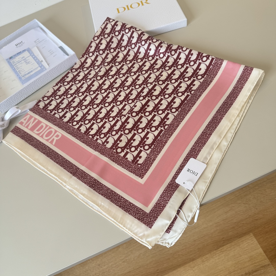 Dior's classic printed handkerchief pays tribute to the classic Oblique print. This Diortwin handkerchief is elaborately crafted from mulberry silk twill fabric, complemented by hand-stitched stitching and decorated with jacquard stripes of the "CHRISTIAN DIOR" logo in the same tone. It can be tied around the neck or used as a headscarf to create an overall look with Dior charm. Size:90x90cm