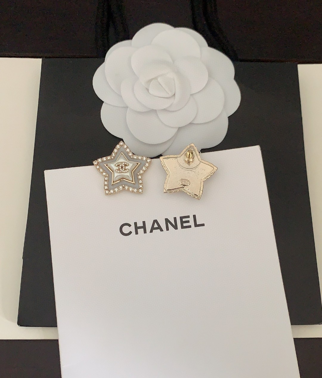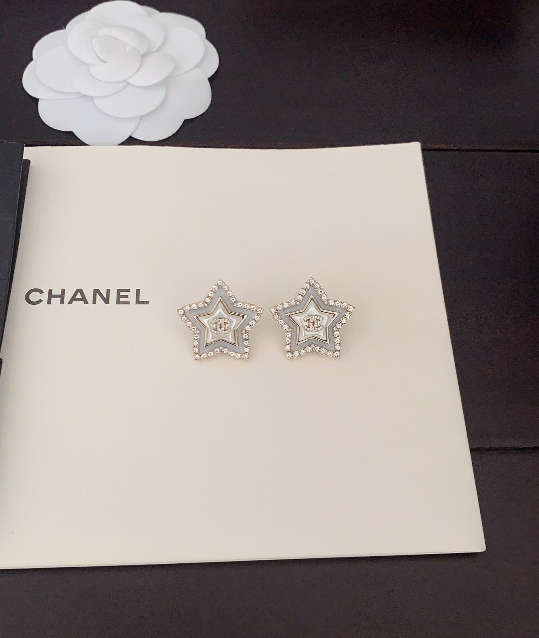 ch*nel latest ???? white pearl five-pointed star stud Earrings