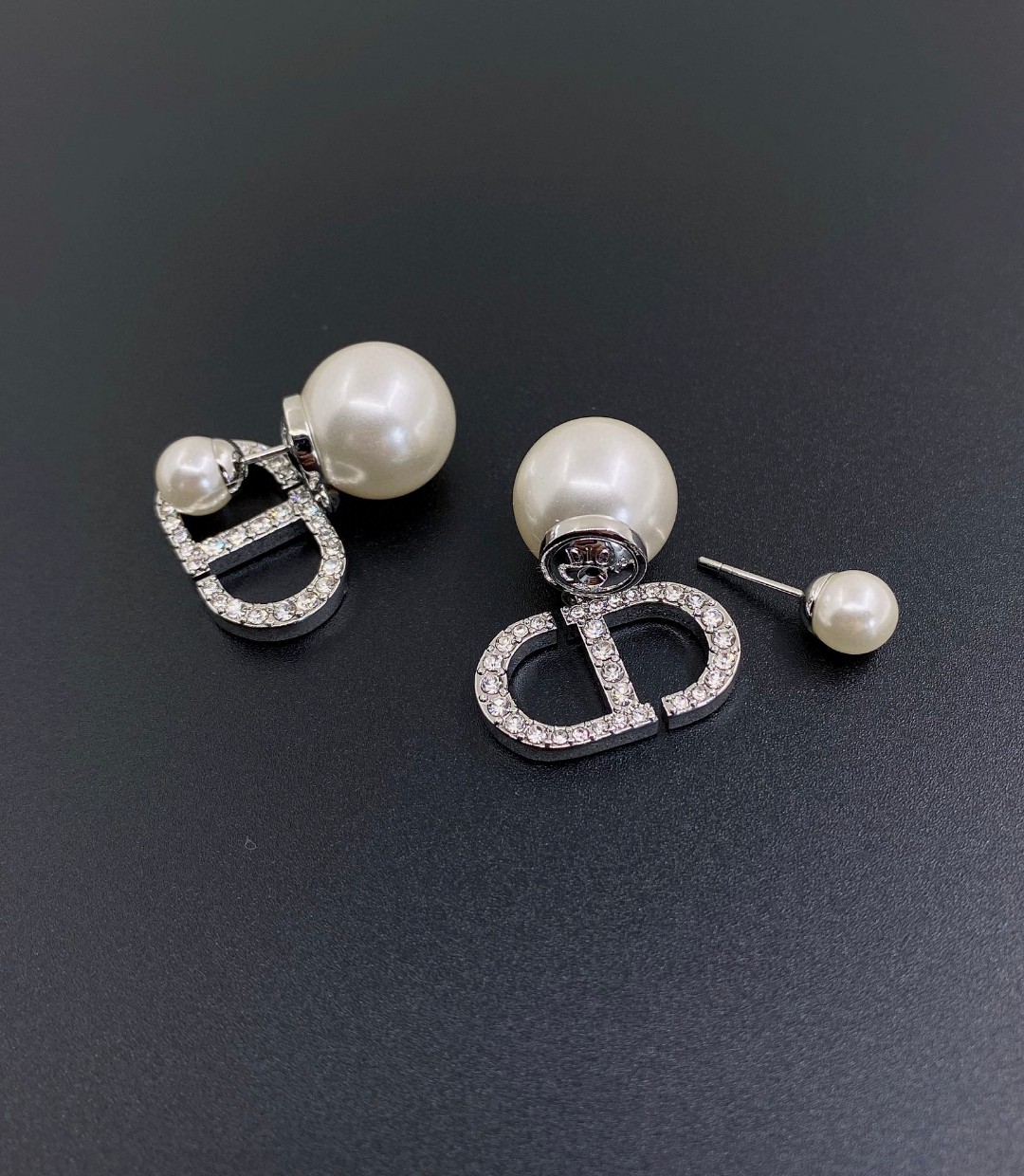 d*or latest ???? large and small pearl silver full diamond cd stud Earrings] consistent ZP brass Earrings/Ear studs