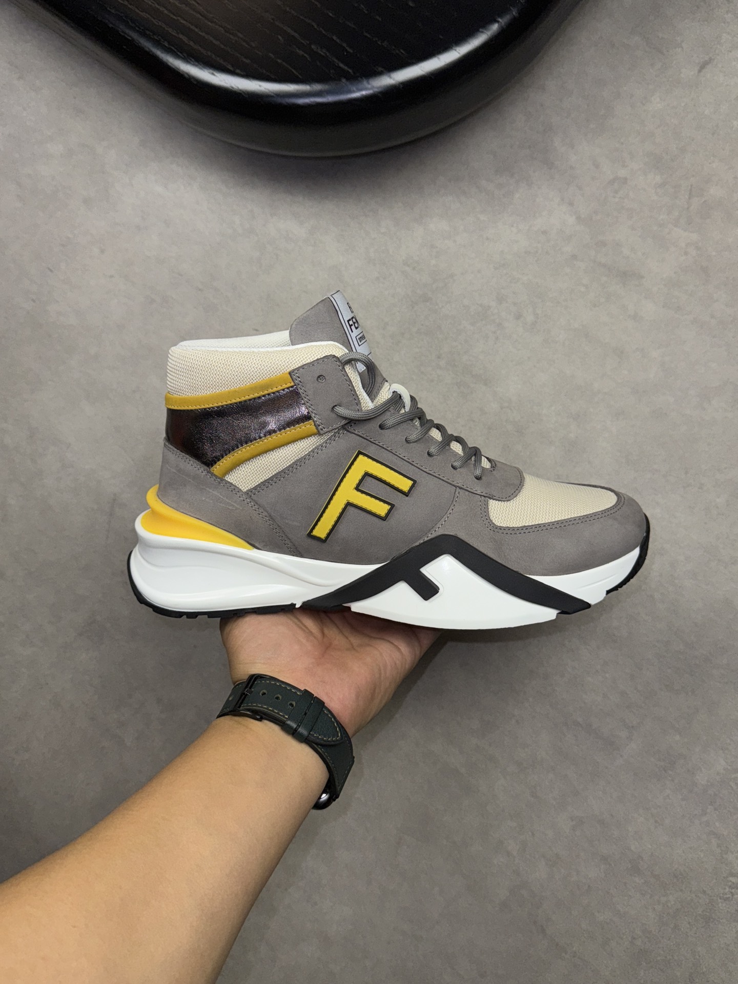 FENDI #5001?????? - HIGH-END quality ORIGINAL single high top ?????? casual sports shoes - Upper: ?? brushed calfskin, brand high mercerized canvas, body stitched brand totem: perfect stitching - Inside: Brand canvas fabric - Outsole: TPU foam