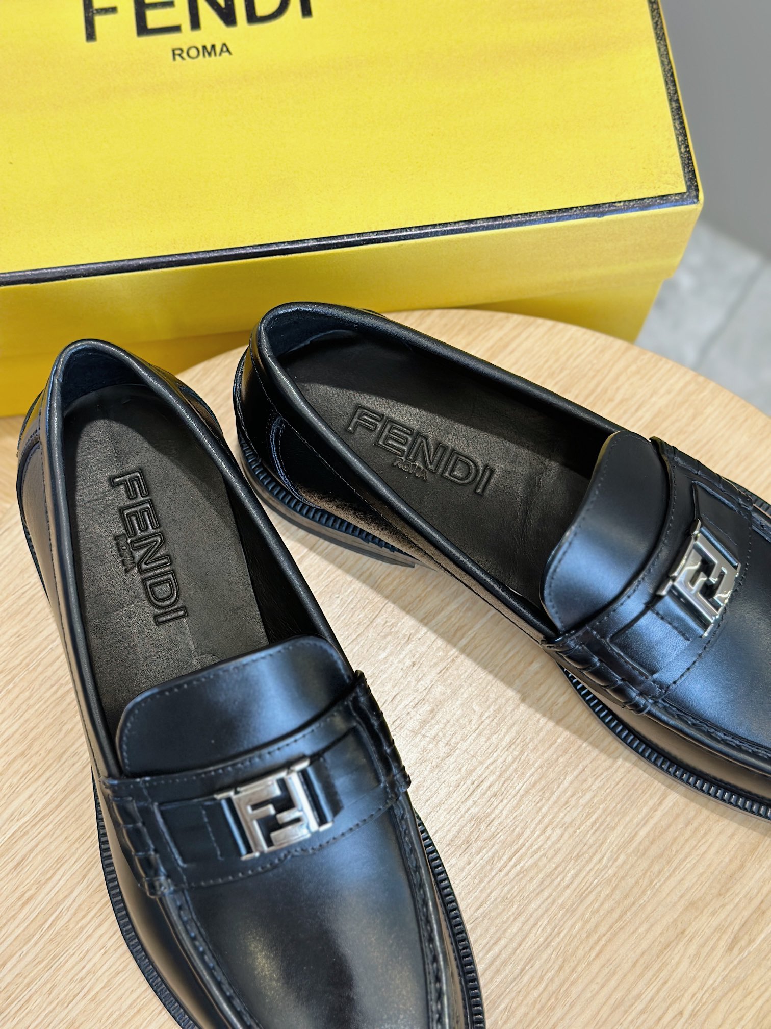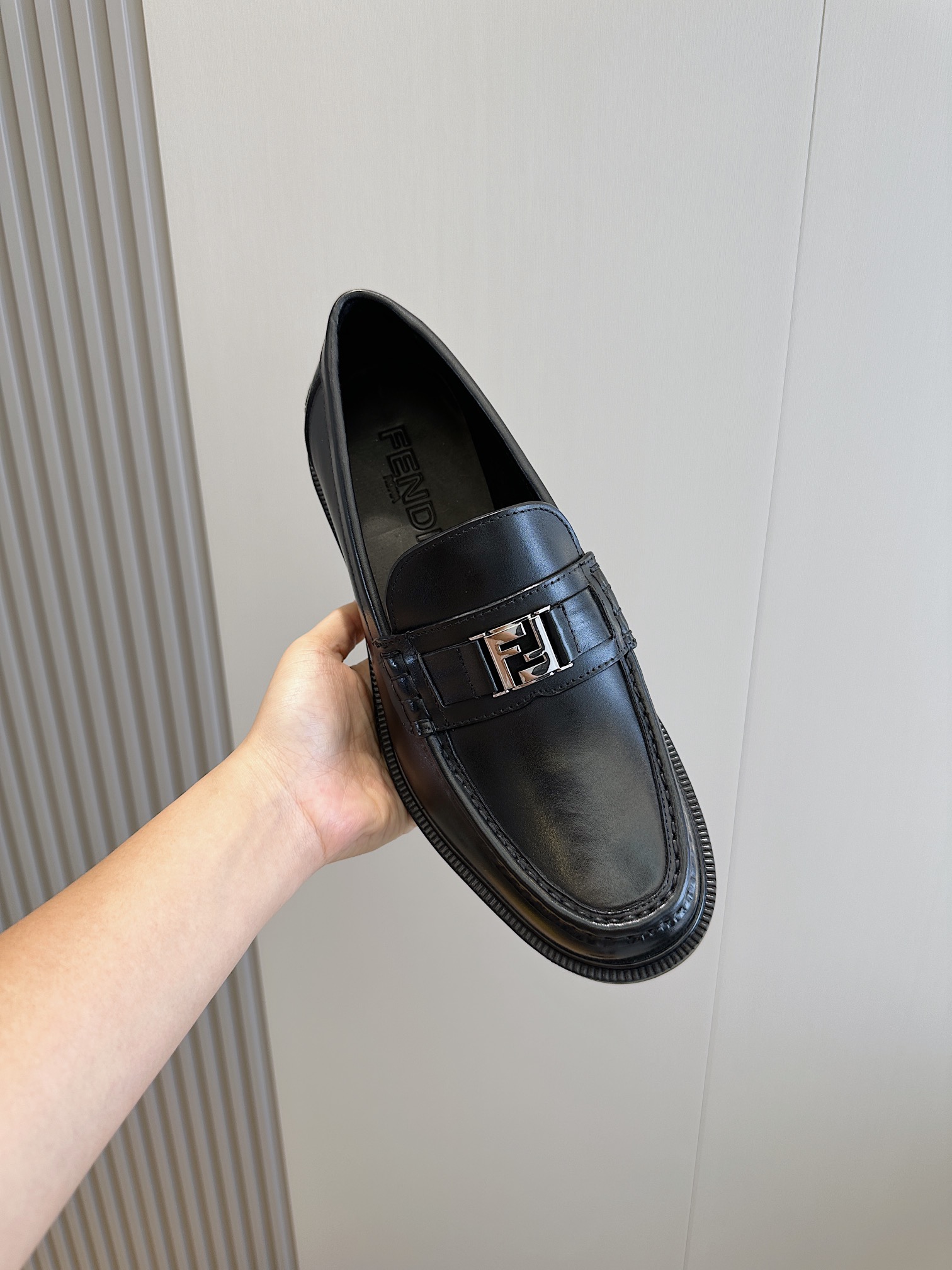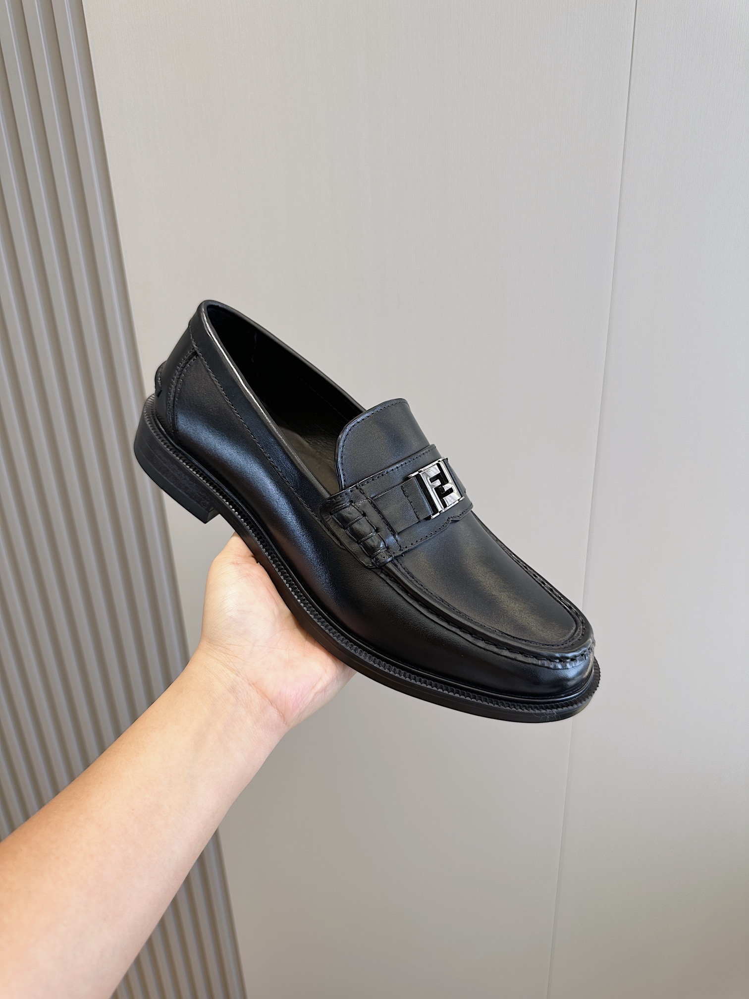 Model #4005??????Fendi black cowhide loafers for men It is decorated with FF pattern and has a silver finish metal. Imported cowhide material, cowhide lining, original factory outsole Size:39-44 (custom-made at 38.45)
