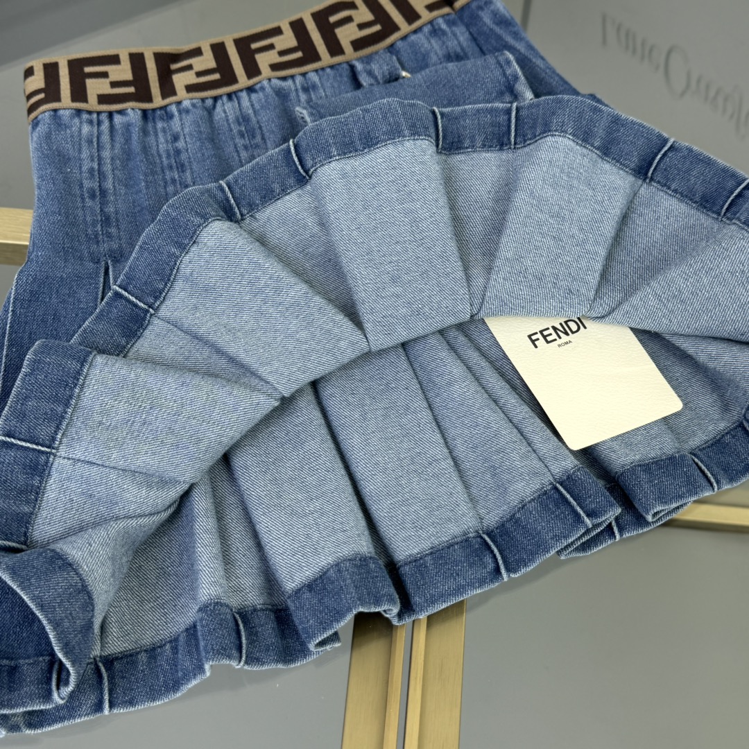 Fendi, high-end children's clothes, girls dress, select wash water denim fabrics, cotton fabrics, upper body comfortable, good-looking, code number: 90/100/110/120/130/140/150 cm