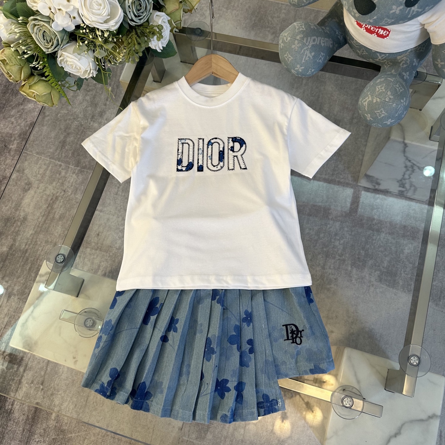 Dior, high-end children's clothes, girls dress, ink printing technology, import machine conley jet printing denim fabrics, upper body comfortable, good-looking, code number: 100/110/120/130/140/150 cm