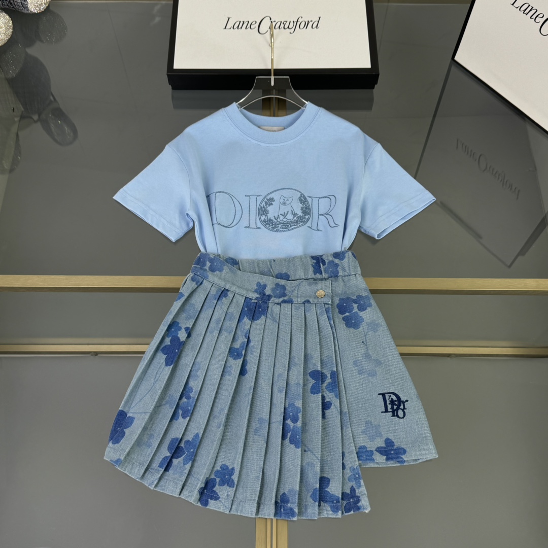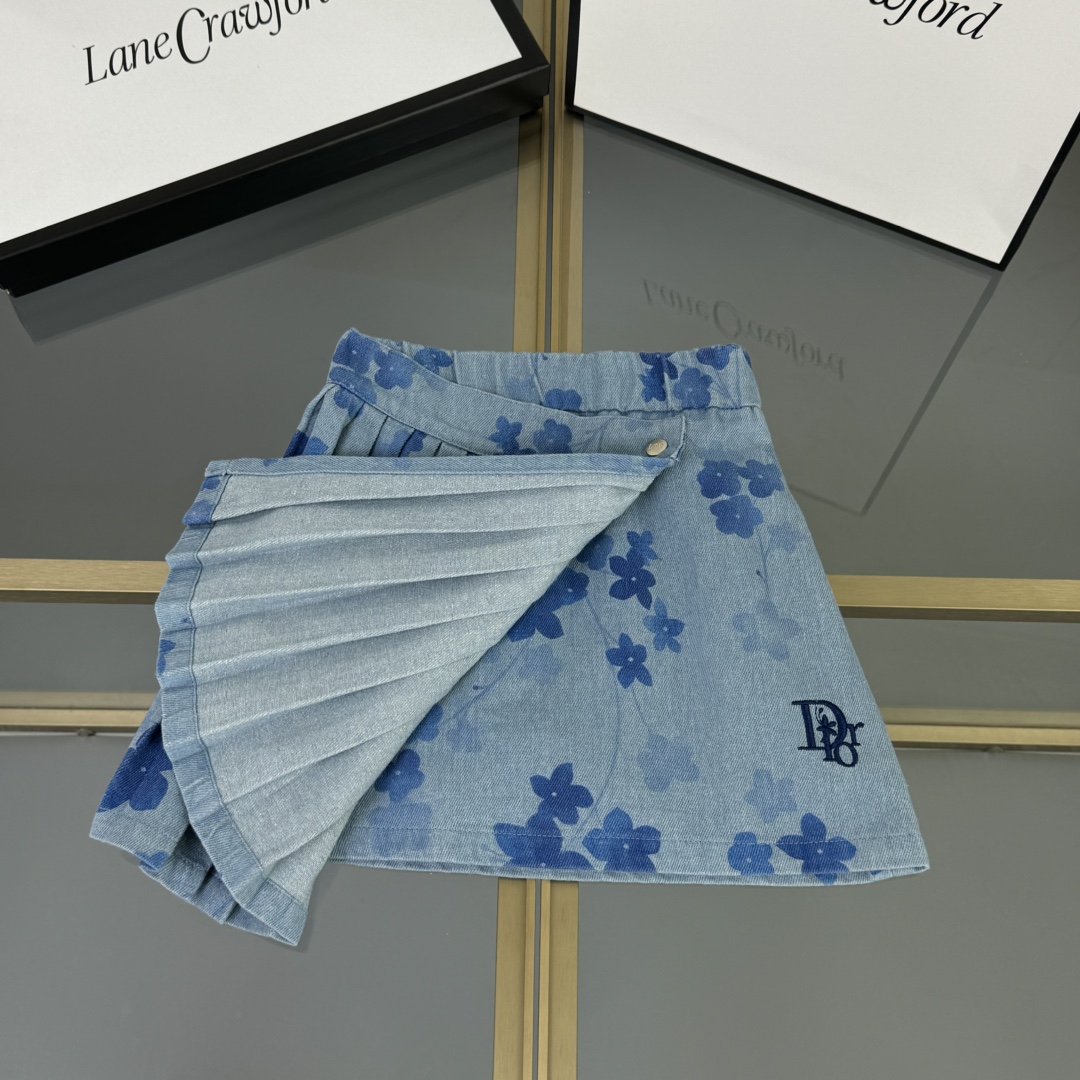 Dior Dior, high-end children's clothes, the girl's skirt, the letter embroidery ??, cotton t, false two wash water cowboy short skirt, embedded in a layer of pure cotton cloth, upper body comfortable, good-looking, code number: 100/110/120/130/140/150 cm