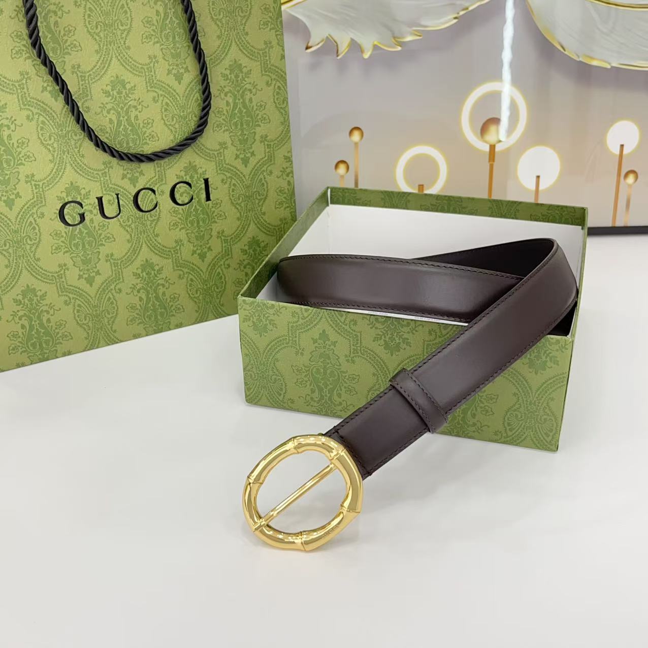 Gucci women's new bamboo buckle with double-sided cowhide and copper buckle, 3.0 cm wide Yards: 75 80 85 90 95 100 105 euros