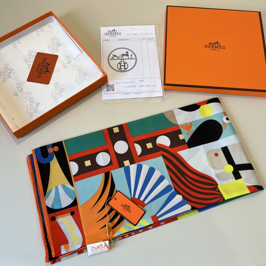 The Hermes handkerchief "Grand Parade" is simply stunning. With its dreamy design, it has become a masterpiece in the private collections of countless collectors! Size: 90*90cm 100% silk