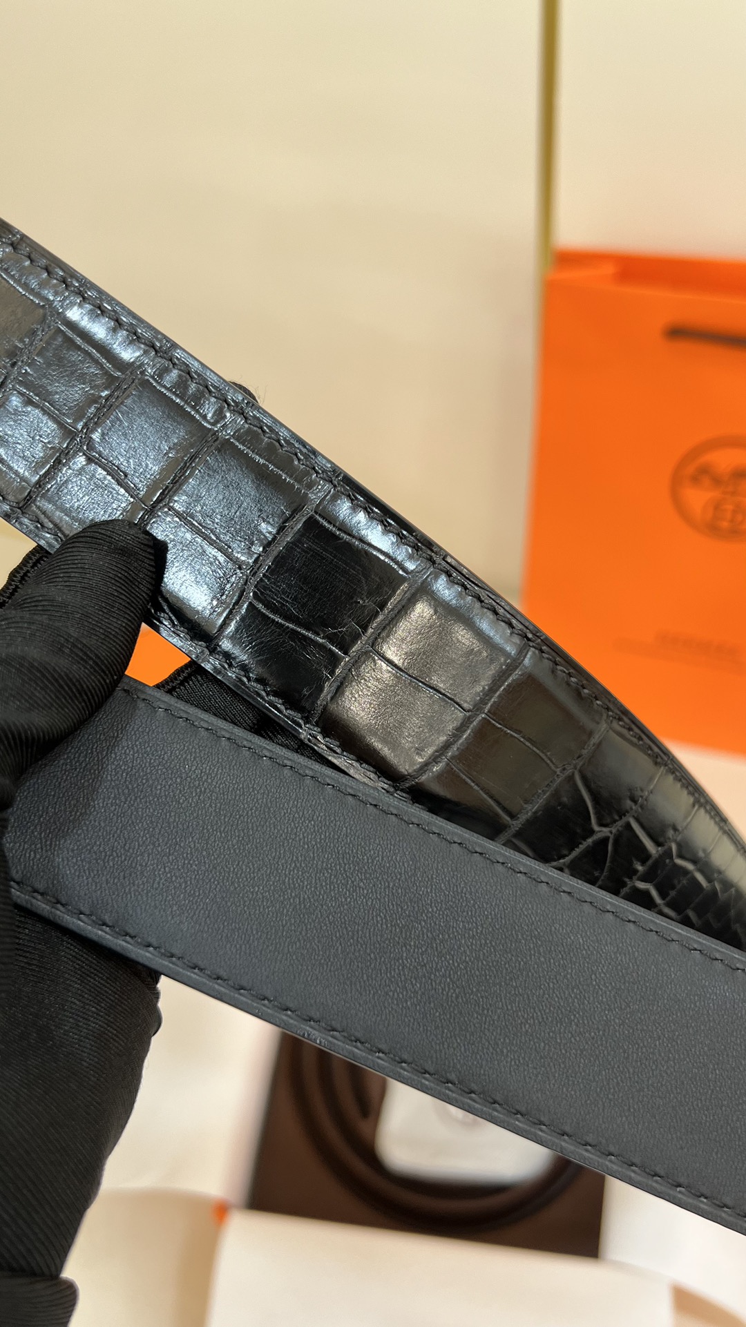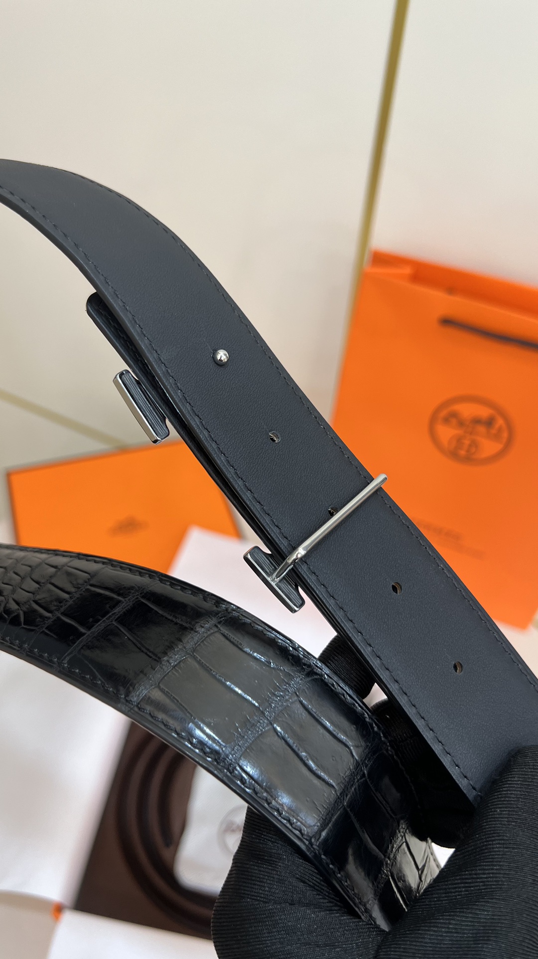 This men's Hermes model features a 3.8cm pure copper metal buckle, paired with a embossed top-grain crocodile leather belt. The base leather is made of top-grain calfskin. The original order is of high quality without losing its style.