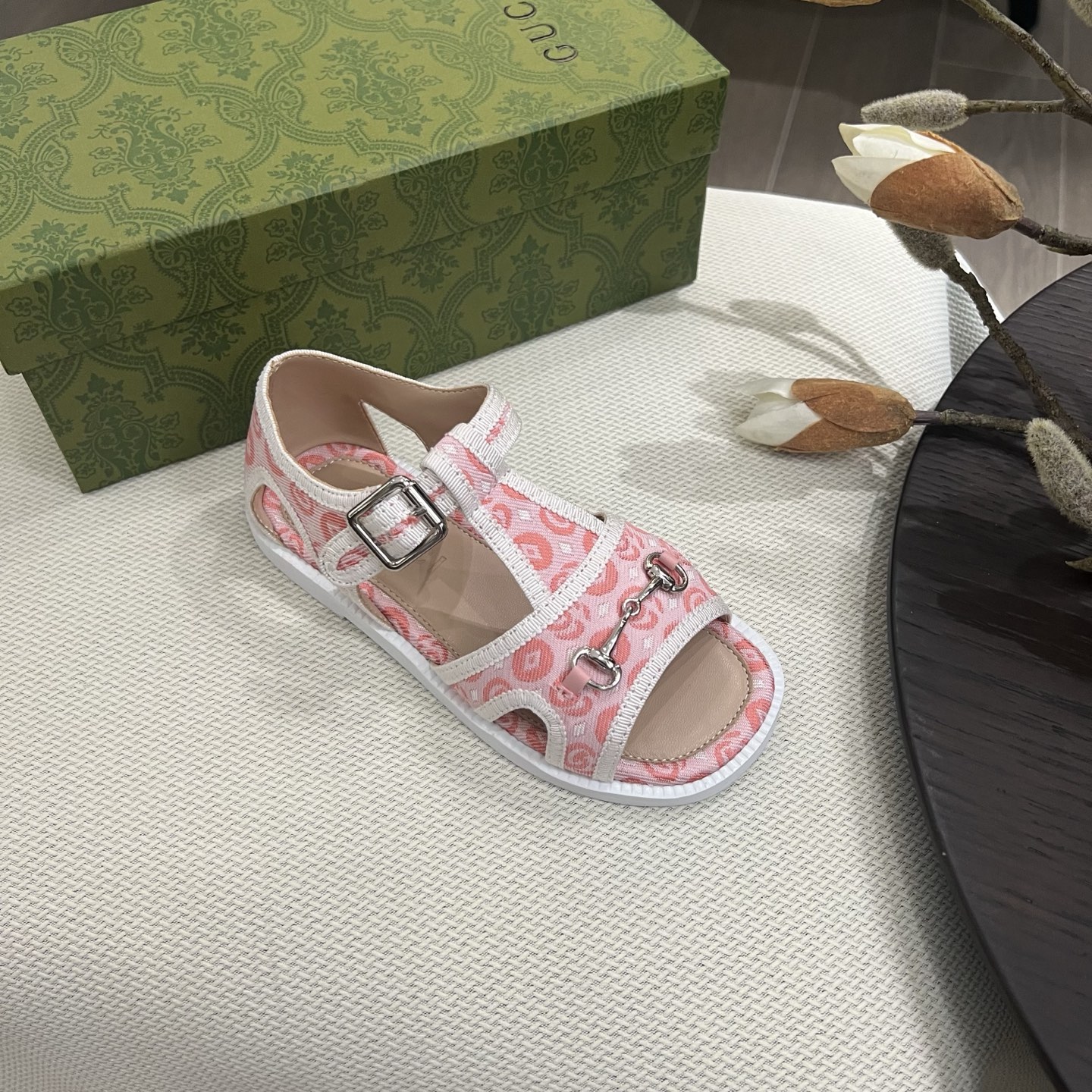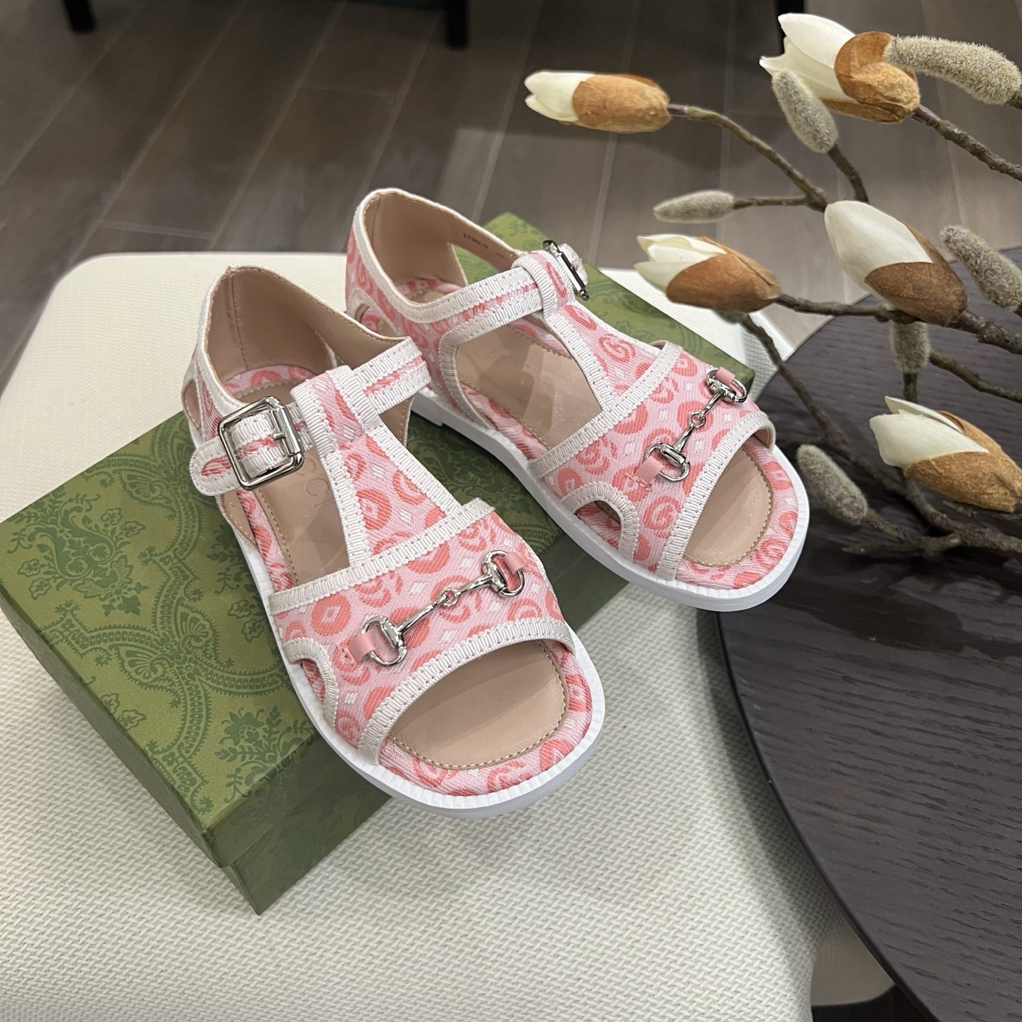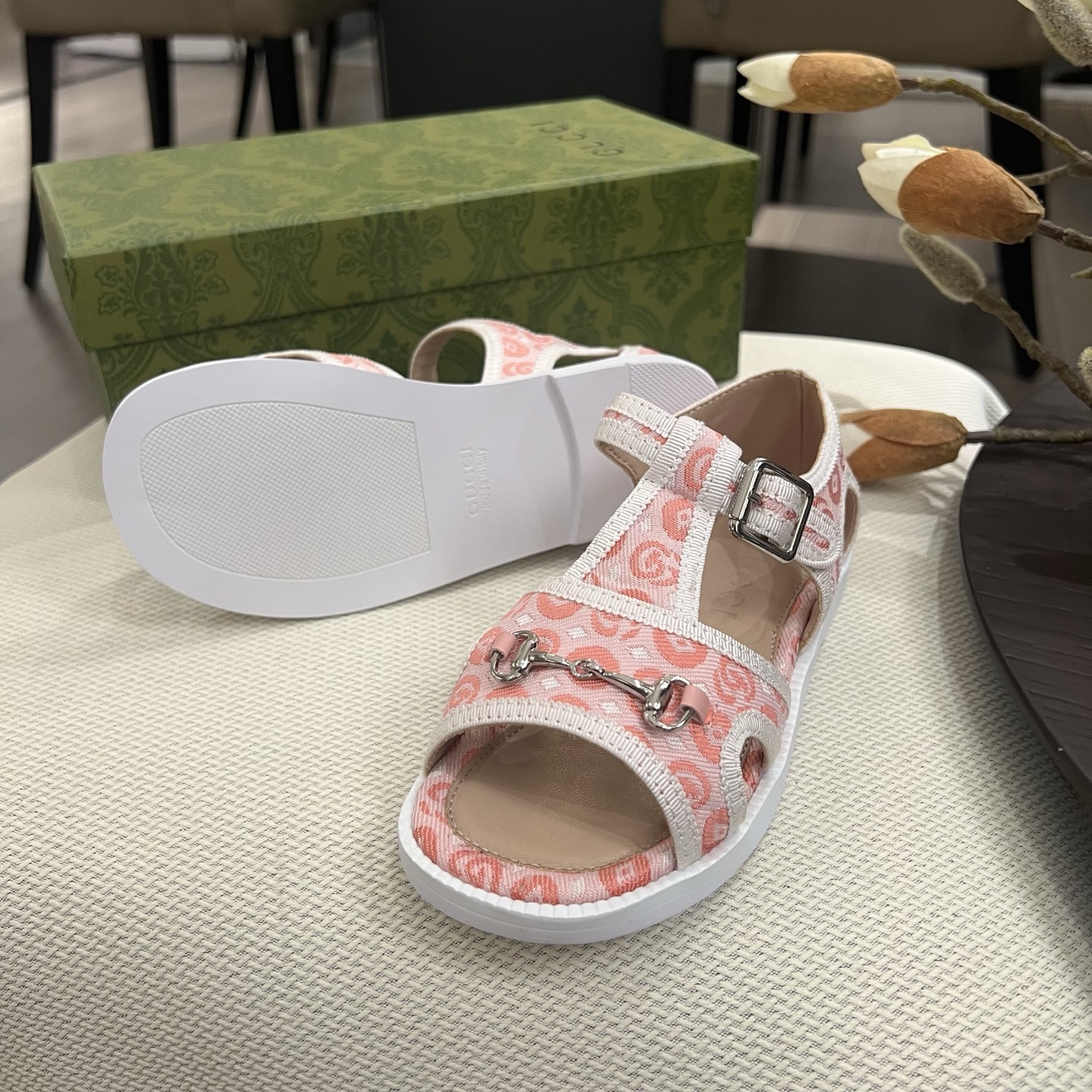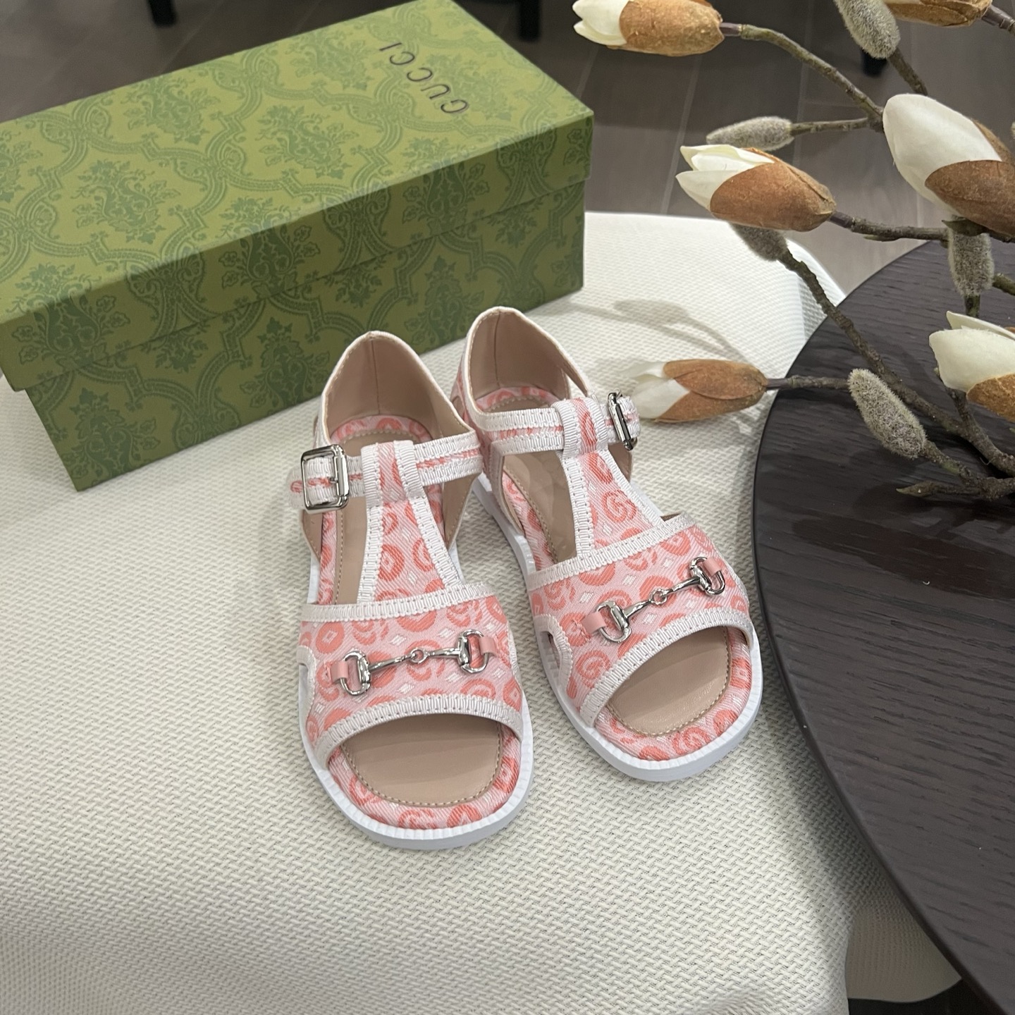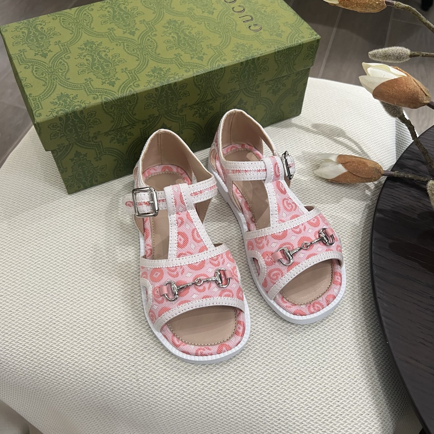 Reservation for 4 days! Gucci HIGH-END children 's shoes, boys' and girls' sandals, classic double G fabric ? classic hardware buckle, COMFORTABLE FIT and GOOD look, size: 26-35