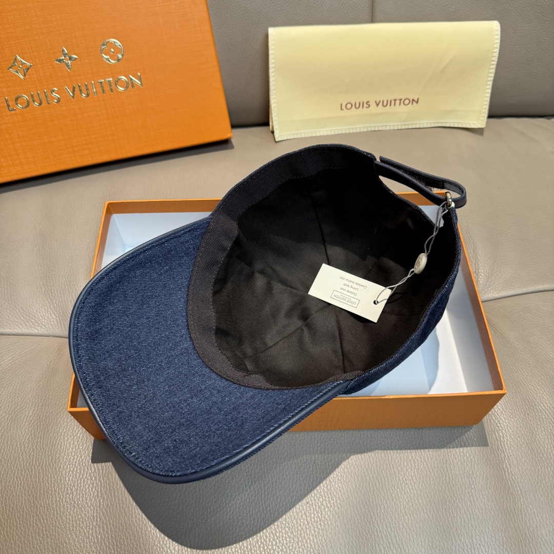 With a box and cloth bag, the new original single baseball cap from LV(Louis Vuitton), LV embroidery, 1:1 mold customization at the counter, original canvas fabric + top-grain cowhide, fine embroidery! The quality is superb. The basic head circumference is 56, and the patch is adjustable.