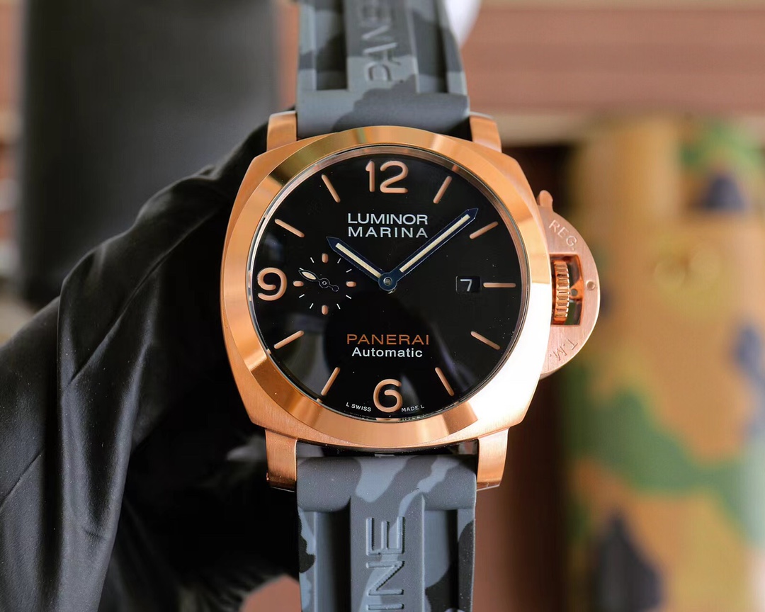 ?? PANERAI arc coated glass 44mm*16mm camouflage rubber strap with original pin buckle automatic mechanical watch from a tough guy