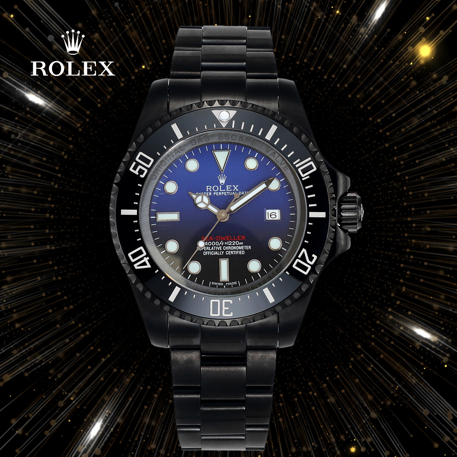 44mm diameter!! The Rolex SEA Submariner series overseas custom Edition - "Red Magic/Blue/Black" has made a stunning debut. Equipped with Seagull 2836/3135 movement! In response to the strong demands of many watch enthusiasts. BLAKEN boldly launched - an all-black Rolex with special significance - "Red Magic" Adhering to the solid, stable and durable foundation of BLAKEN Ghost King, it adopts PVD vacuum negative ion electroplating technology and is coated with a hard black outer layer. This not only makes it more wear-resistant but also ensures long-term stability. The red/blue/black inner shadow and the second hand have the effect of adding the finishing touch, endowing it with a prominent and unique aspect. The inspiration comes from the renowned overseas modification agency - BLAKEN BLAKEN is committed to continuing Rolex's timeless classics and turning "good" into "classic".