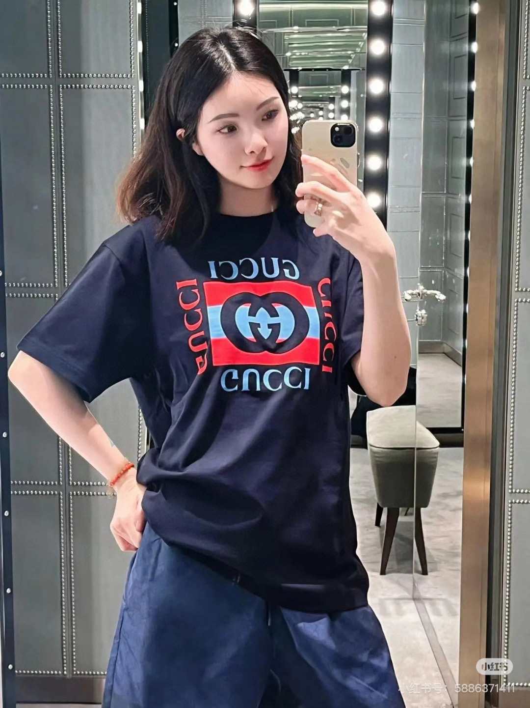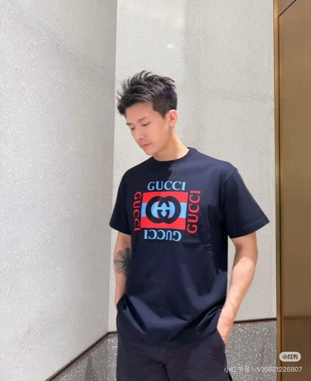 #Gucci/ Gucci 25ss Double G square logo print short sleeve effect