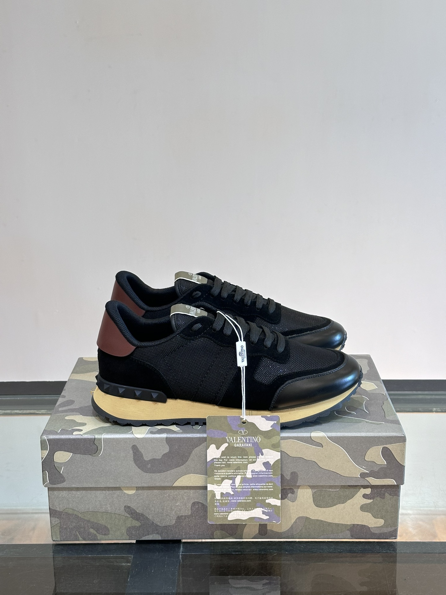Model No. #3005??????Valentin* casual sports shoes for men, made of multi-material patchwork, ultra-light sports shoes, calfskin patchwork camouflage fabric upper, fabric tongue decorated with brand emblem, rubber rivets on the heel decorative detail, riveted rubber outsole, anti-slip, wear-resistant and shock-absorbing, pure cotton insole, comfortable and breathable, packed in original box formula bag! Size: 38-44 (Custom-made for 45 and 46)