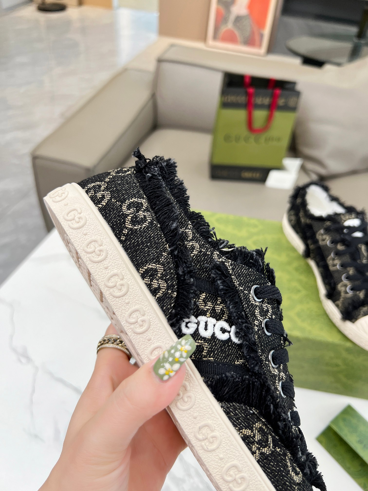 ???? GUCCI ~ Early Spring 24 star style, the same style as celebrities like Yang Mi and Tang Yan, the latest blue denim double G embroidery, low-top laced fashionable sneakers, original developed from the store, fabric denim double G, special upper craftsmanship perfect match, TPU outsole, size 35-40