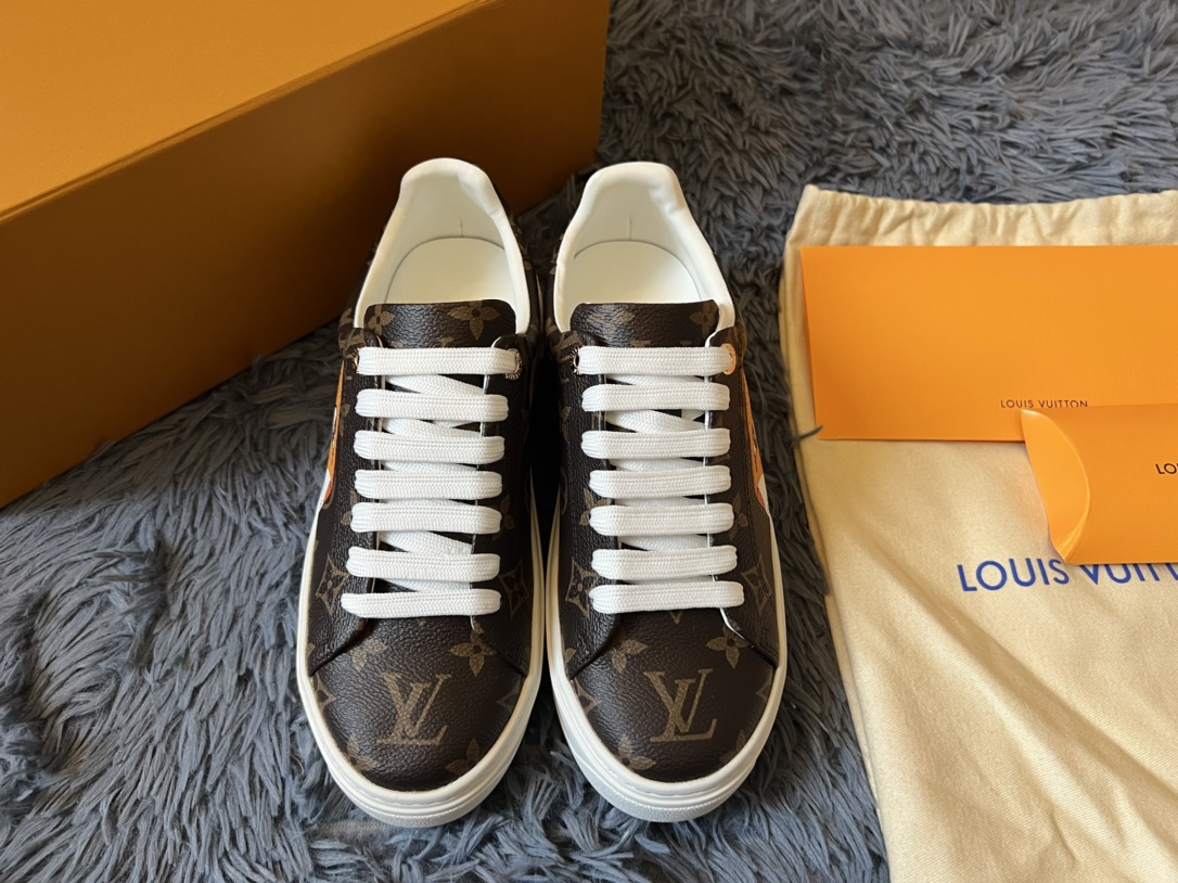 ???? Louis Vuitton Time Out 24 Spring/Summer new sneakers give sneakers ELEGANT and HIGH-END style Easy height increase simple and versatile selected calfskin material water-dyed sheepskin lining TPU outsole Size:35-41